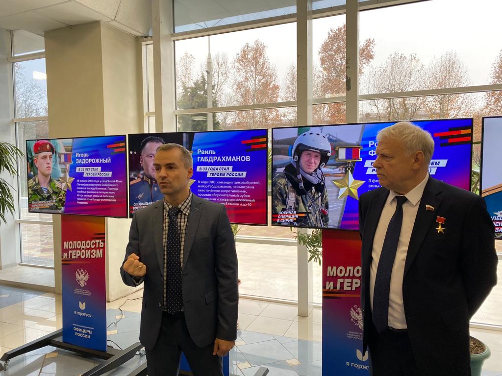 Участники проекта «Молодость и героизм», члены Президиума Общероссийской организации «Офицеры России» Герой Социалистического труда Геннадий Баштанюк и Герой Российской Федерации генерал-лейтенант Иван Бохонко в ходе открытого диалога со студентами КубГУ продемонстрировали молодежи на конкретных примерах жизни и подвигов, что героические поступки, в большинстве своем, люди совершают именно в молодом возрасте, до 35 лет, а также рассказали, что место для настоящего подвига есть всегда, причем не только в условиях боевых действий, но и в мирной повседневной жизни.